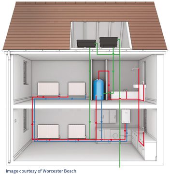 Similar to a regular boiler, a system boiler also requires a hot water cylinder; however, a system boiler has the major components needed to run a heating and hot water system built in, removing the need for an expansion tank in the loft, and generally making for a quicker, easier installation. System boilers are also compatible with solar hot water systems for lower bills and environmental benefits.